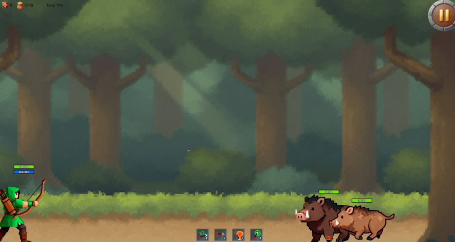 You are an archer holding the line — waves of monsters close in from the right, and only your bow stands between them and destruction.