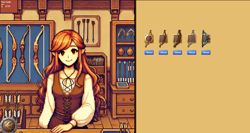 - Diverse weapons — unlock better bows as you grow stronger, each with unique damage and charge characteristics